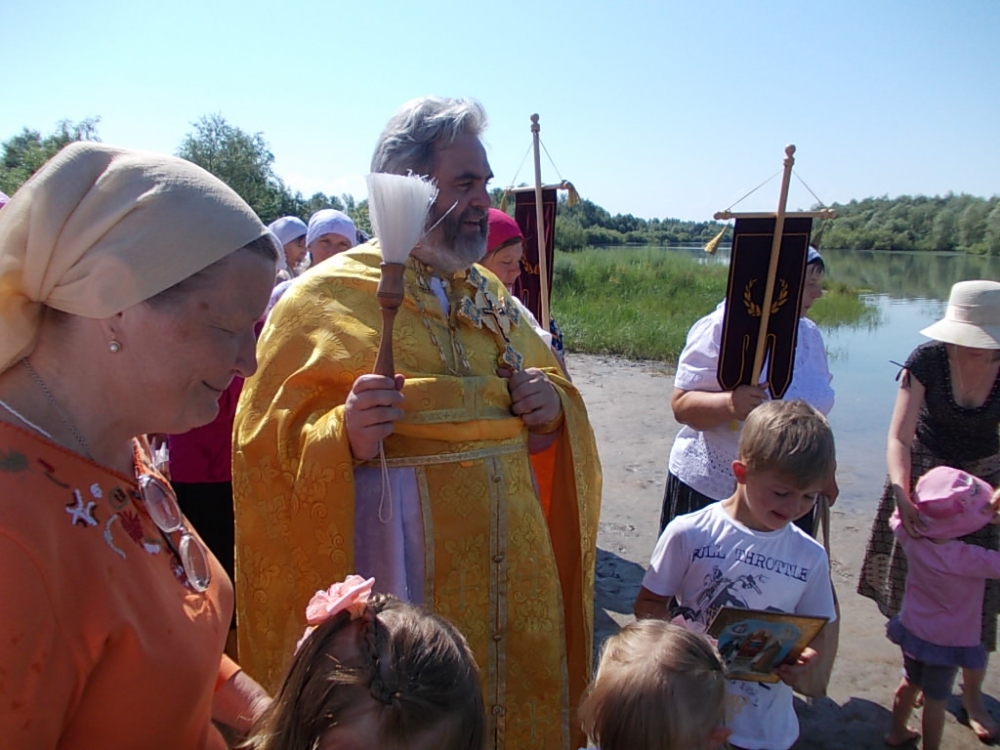 После Божественной литургии все прихожане пошли Крестным ходом с крестом, хоругвями и иконами, с молебным пением на воды Иртыша. Здесь был отслужен водосвятный молебен. Батюшка окропил всех водой, желающие искупались в освящённых водах Иртыша.